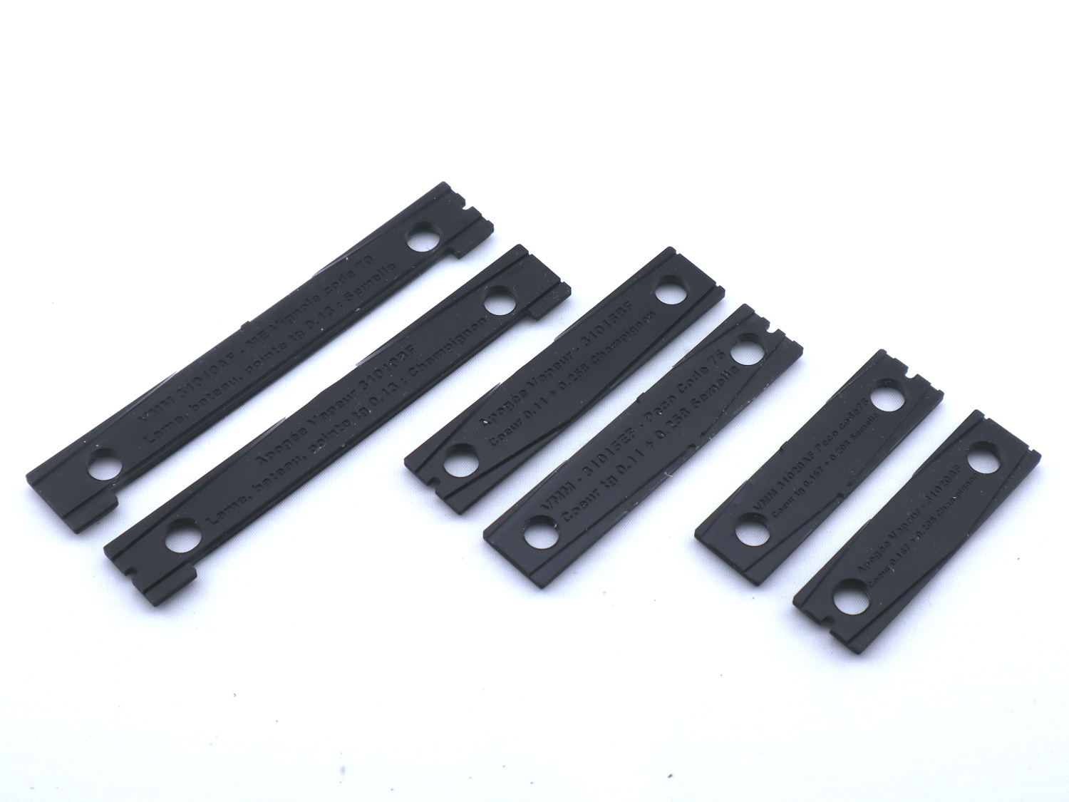 La largeur du rail Peco augmente de 0.15 mm, ce qui implique une nouvelle largeur d'ornière et donc un jeu de trois nouvelles mordaches.