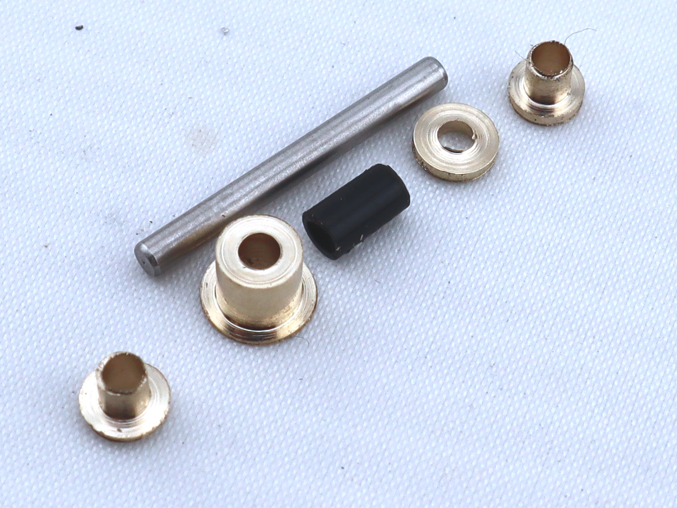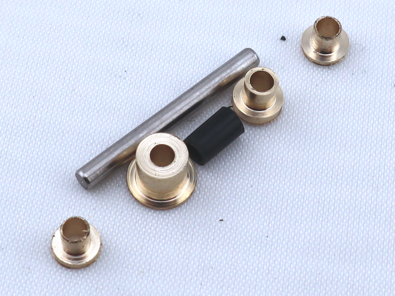 Comme les portées de nos moyeux sont alésées à 2.39 mm mais que nous avons choisi des axes de 1.97 mm Ref 50004U, nous utilisons des canons intermédiaires Ref 50054U.