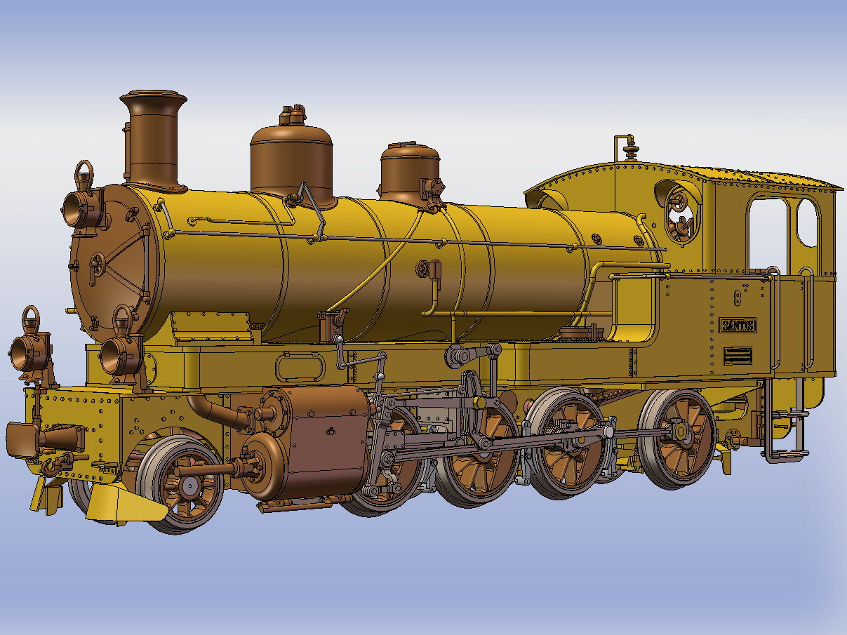 La machine de gauche est en voie métrique, ses roues sont petites mais restent de proportions agréables à l'oeil même avec les bagues isolantes que nécessitent les rayonnages en bronze à la cire perdue.
