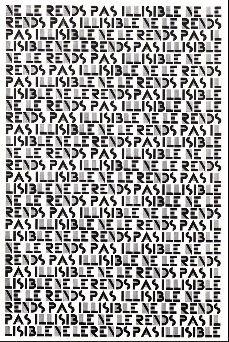 - L’affiche « Ne le rend pas illisible » rassemble volontairement trop d’écritures malgré un lettrage magnifique quand il est employé avec parcimonie. Si l’affiche n’est que difficilement lisible, en effet, son message est parfaitement clair ! Photo : extrait de la brochure Bifur, 1929.