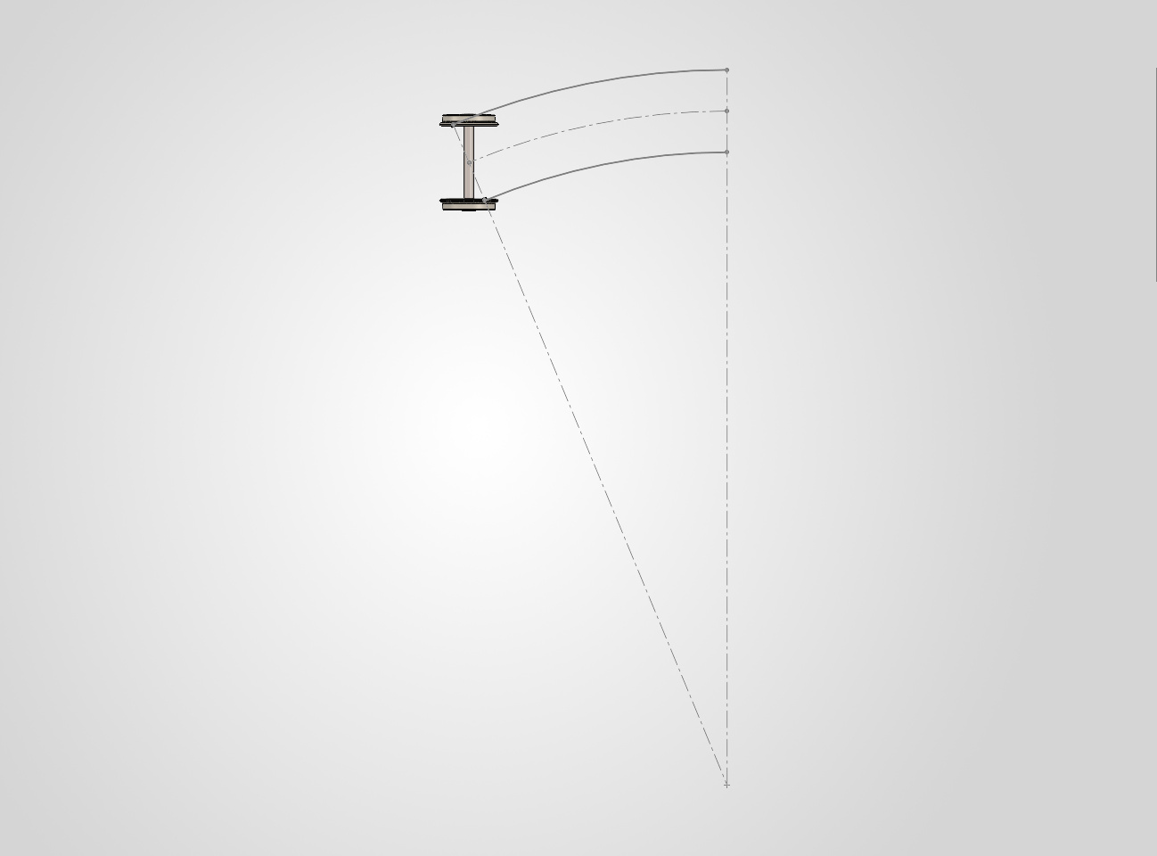 Installons un essieu de 10.6 mm en norme RP25-88 ou NEM 311.1 sur un tronçon courbe « un peu excessif » car le rayon est de 135 mm juste pour voir, à 4.50 m du plan contenant le centre de courbure.