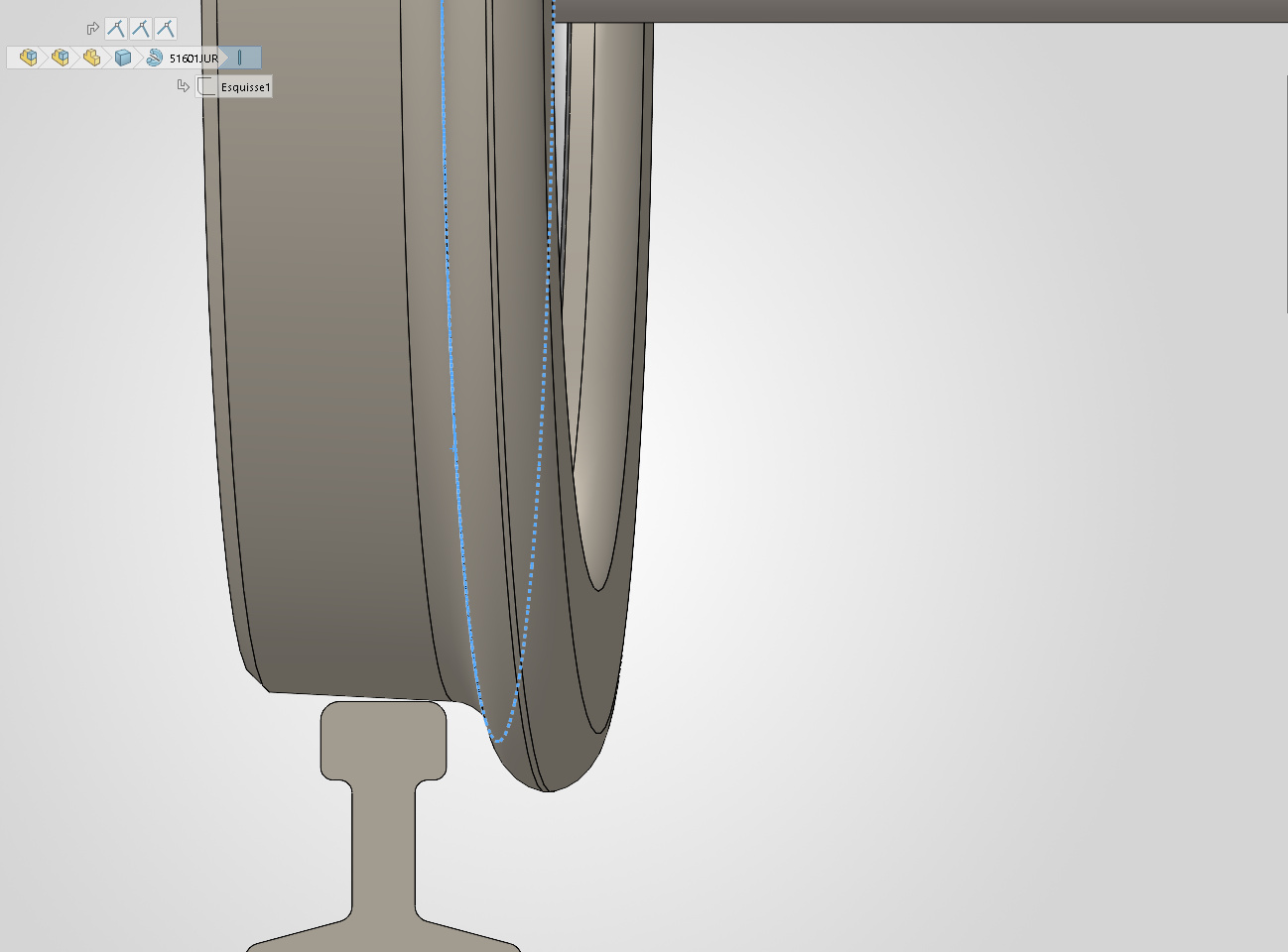 Si on augmente à 500 mm de rayon comme ici à droite, le congé de raccordement commence à faire un peu effet mais le boudin touche encore le rail avant la limite du congé.