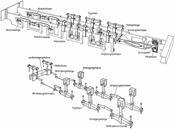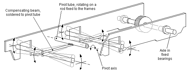 Les locomotives réelles ajoutent des balanciers parfois complexes pour répartir la masse entre les essieux.