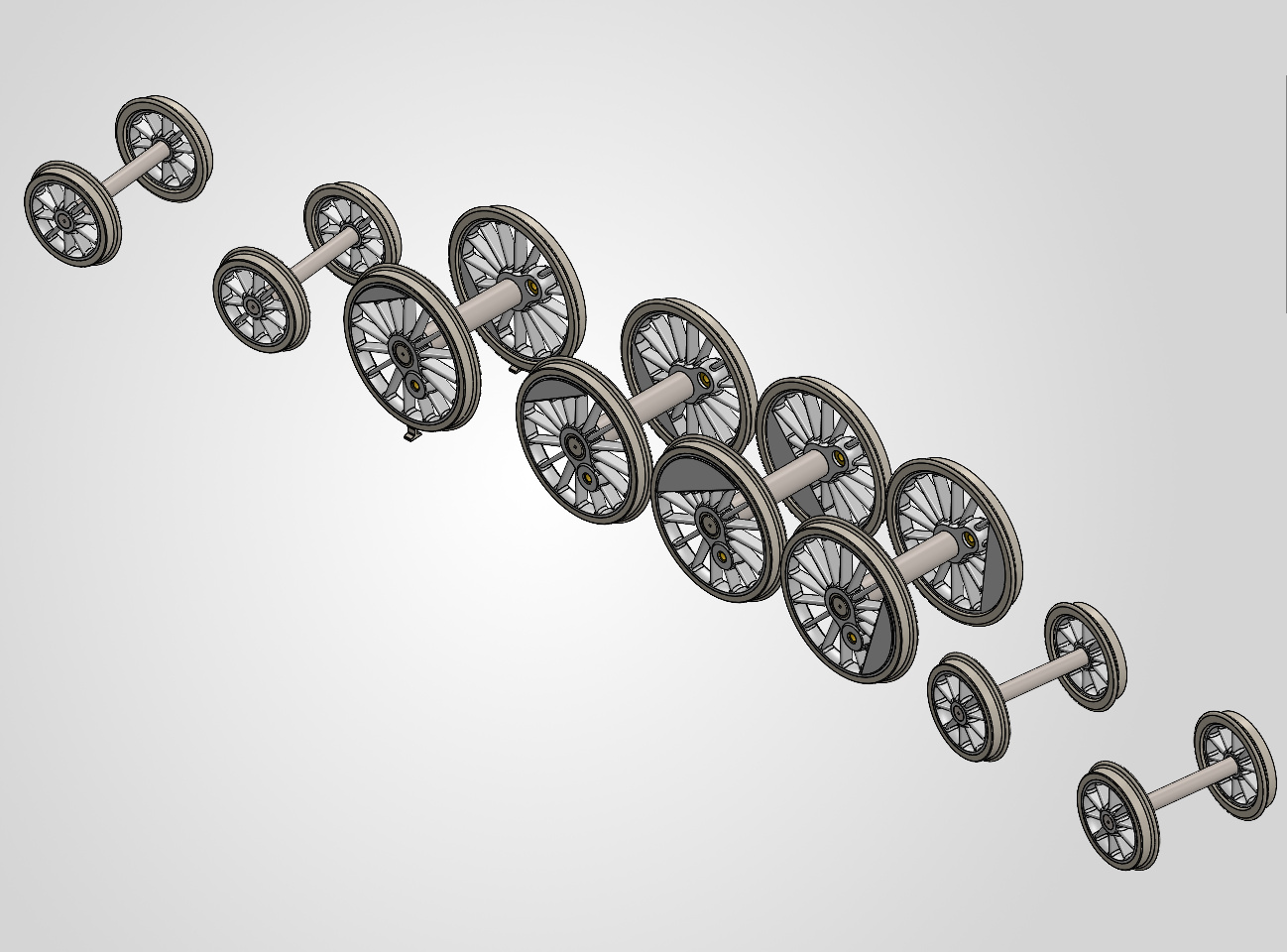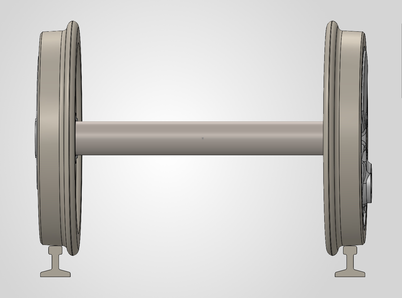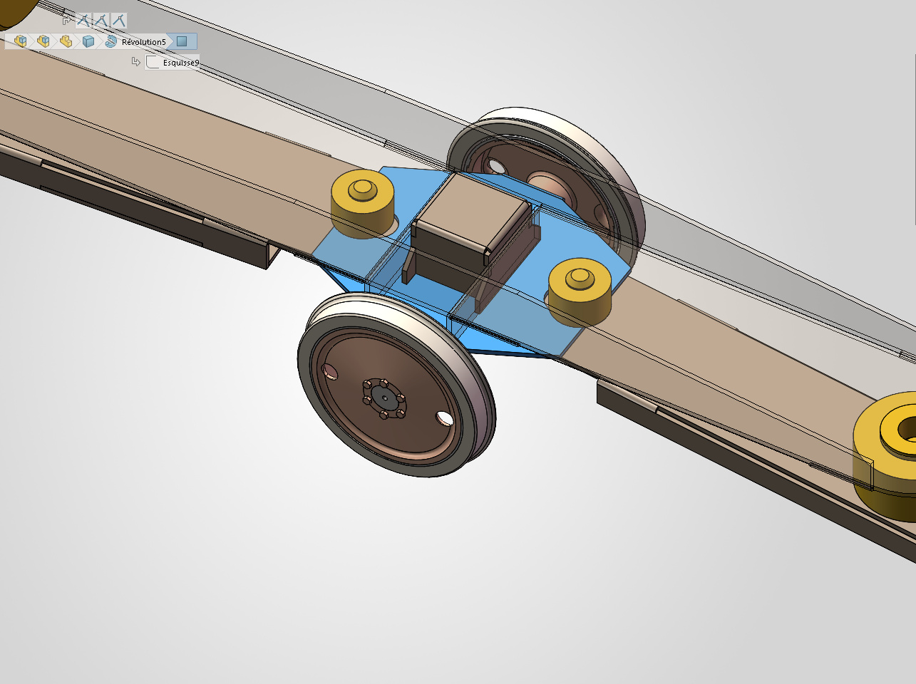 Masquons l’embiellage et coupons notre modèle au niveau de l’axe des roues motrices : on voit les palpeurs en contact avec les bandages en ayant une course libre de 0.75 mm.