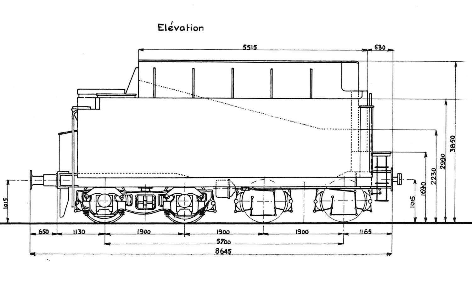 - Bogie avant essieu arrière : 2.02 mm,