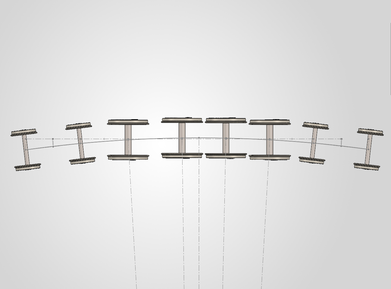 On place ces essieux le long d’une courbe de 450 mm de rayon, avec l’origine le long de la courbe pour constater le déplacement.