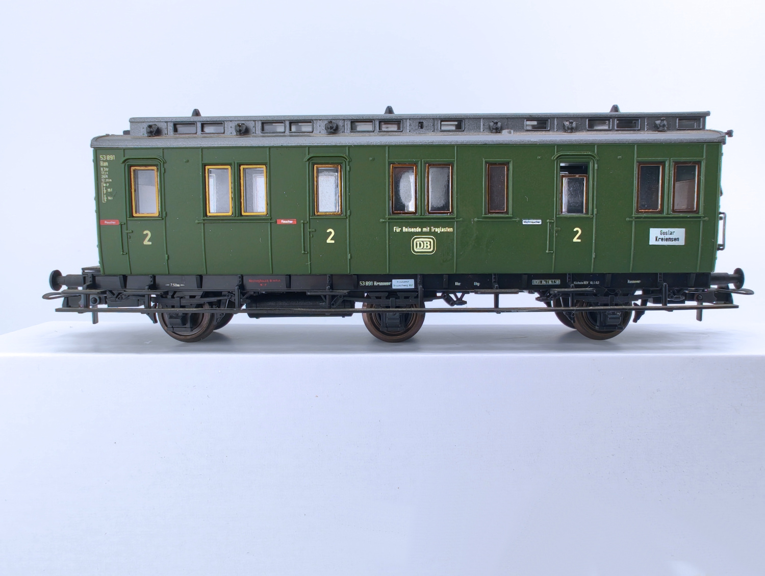 Une solution classique a été très soigneusement réalisée sur cette voiture à trois essieux Roco acquis pour 31.20 DM, soit environ autant d’Euros actuels.