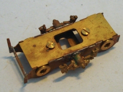 | Encore un très beau modèle pour son époque, mais cette fois en kit. Ce modèle est équipé d'un réducteur Escap RG4 intelligemment monté puisque les trois essieux peuvent se déposer simplement en retirant le fond du châssis. Il en va de même pour le bogie et le bissel qui sont munis de logements en U pour les paliers : bravo, c'est très simple à convertir ! |