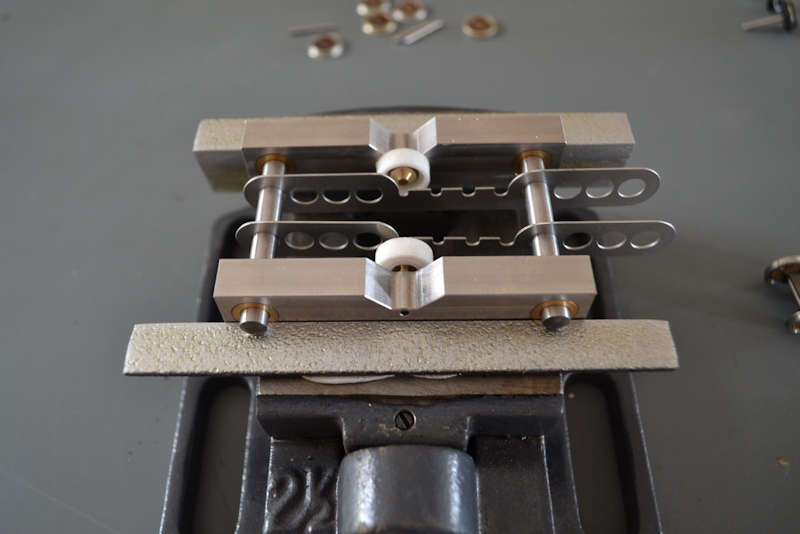 Placer l'essieu dans son emplacement entre les coupelles et serrer doucement l'étau.
