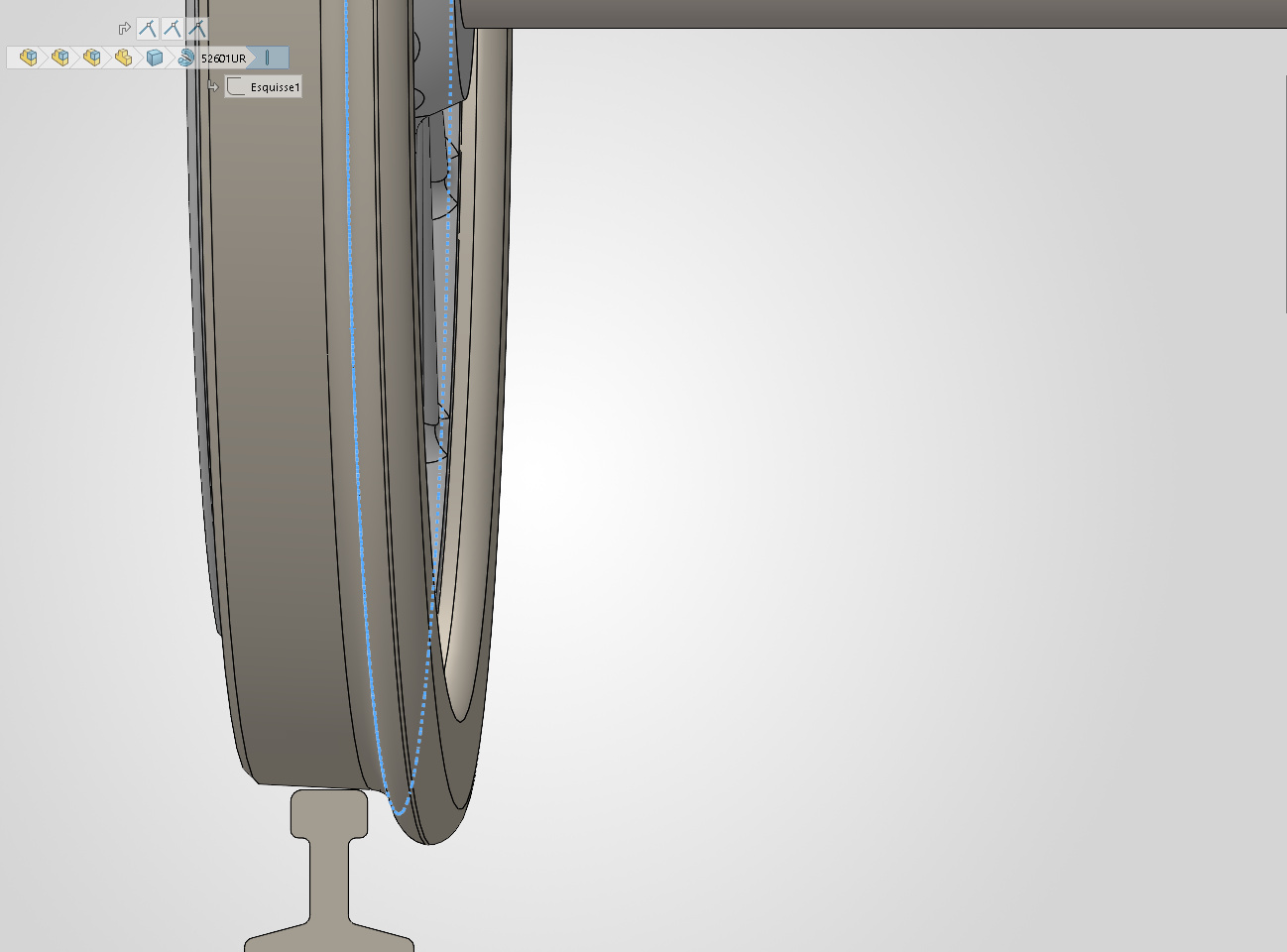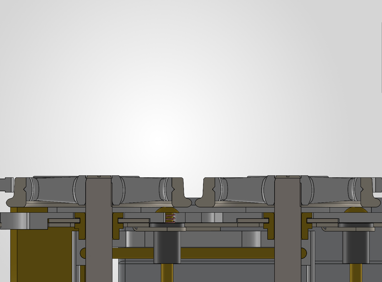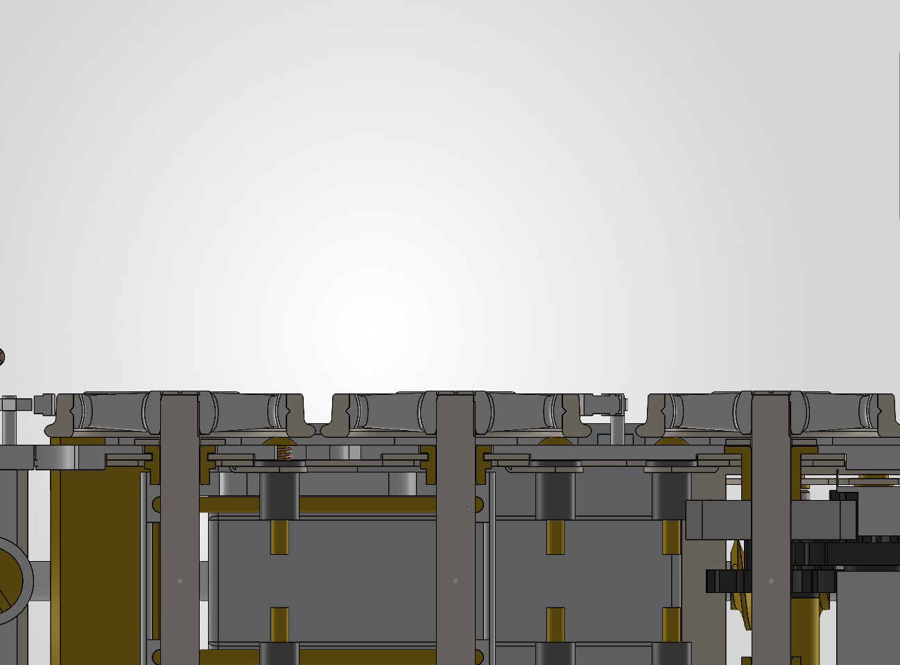 Masquons l’embiellage et coupons notre modèle au niveau de l’axe des roues motrices : on voit les palpeurs en contact avec les bandages en ayant une course libre de 0.75 mm.