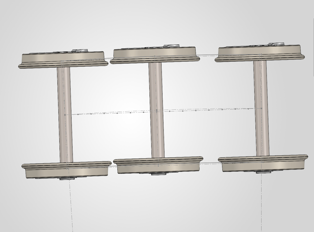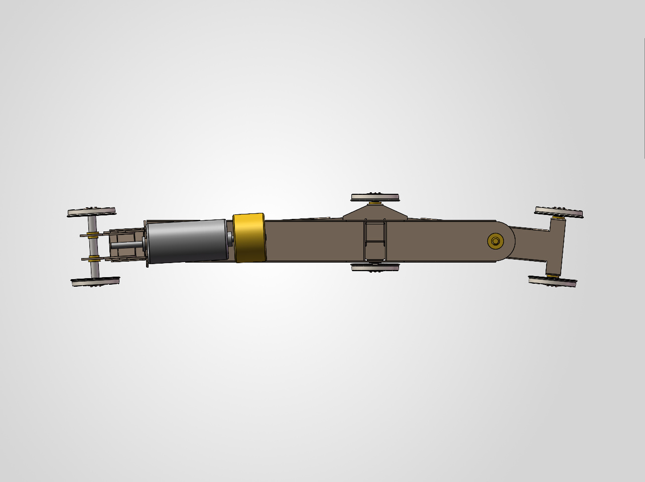 Les deux poutres secondaires relient l’essieu médian à chacun des essieux extrèmes pour les rendre radiants.