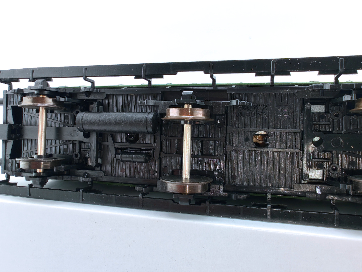Une solution classique a été très soigneusement réalisée sur cette voiture à trois essieux Roco acquis pour 31.20 DM, soit environ autant d’Euros actuels.